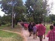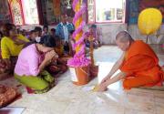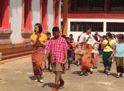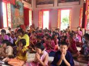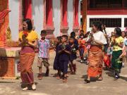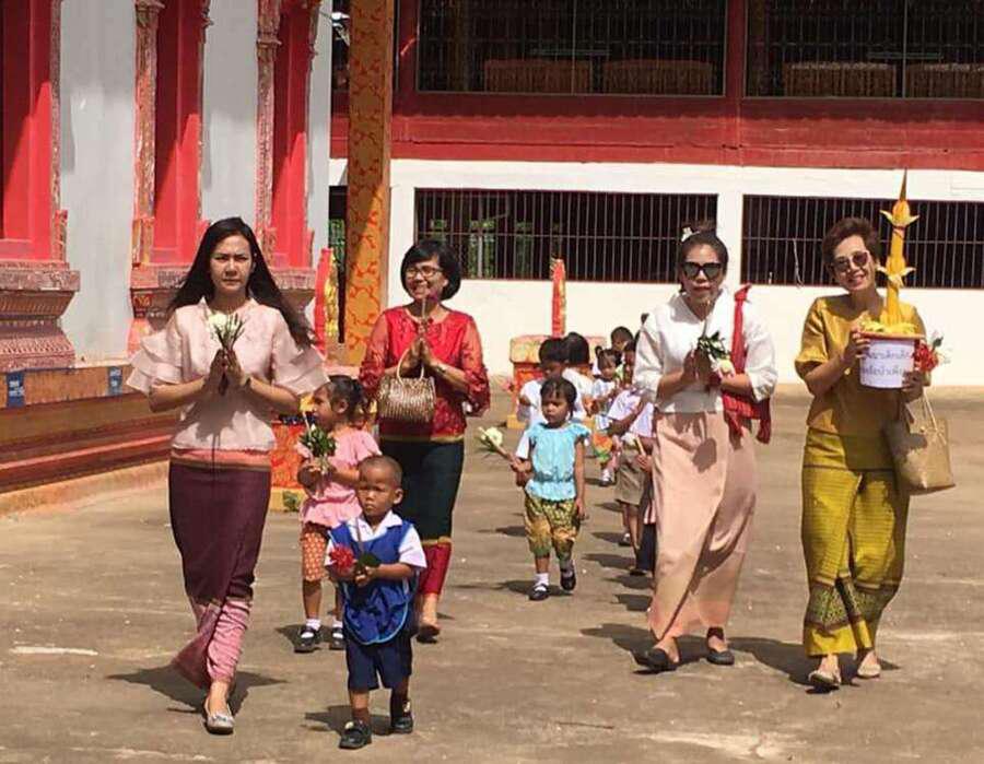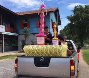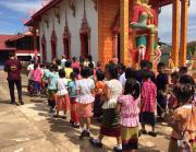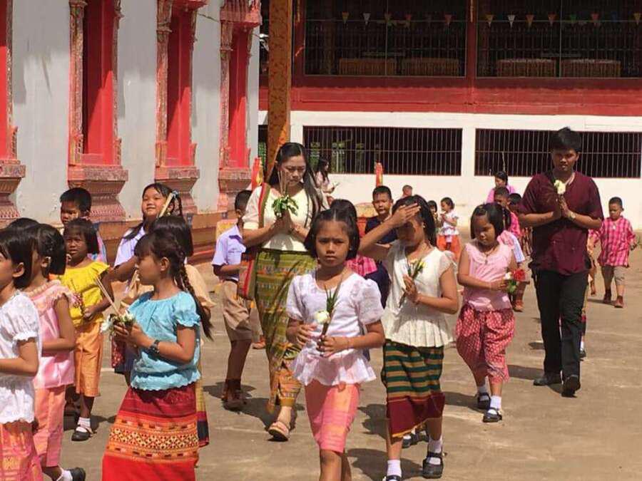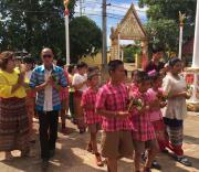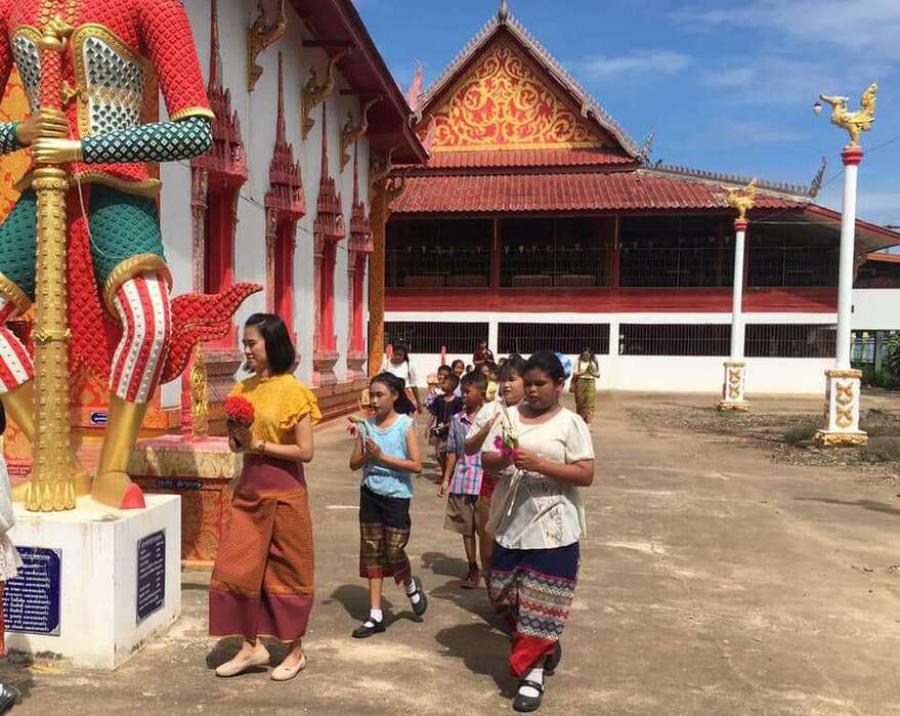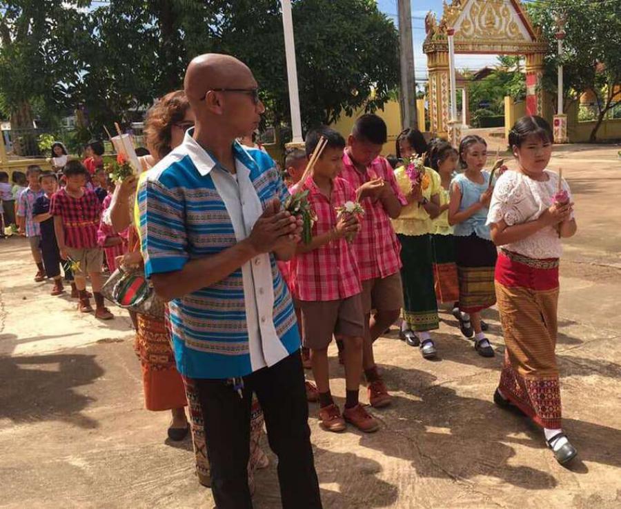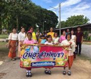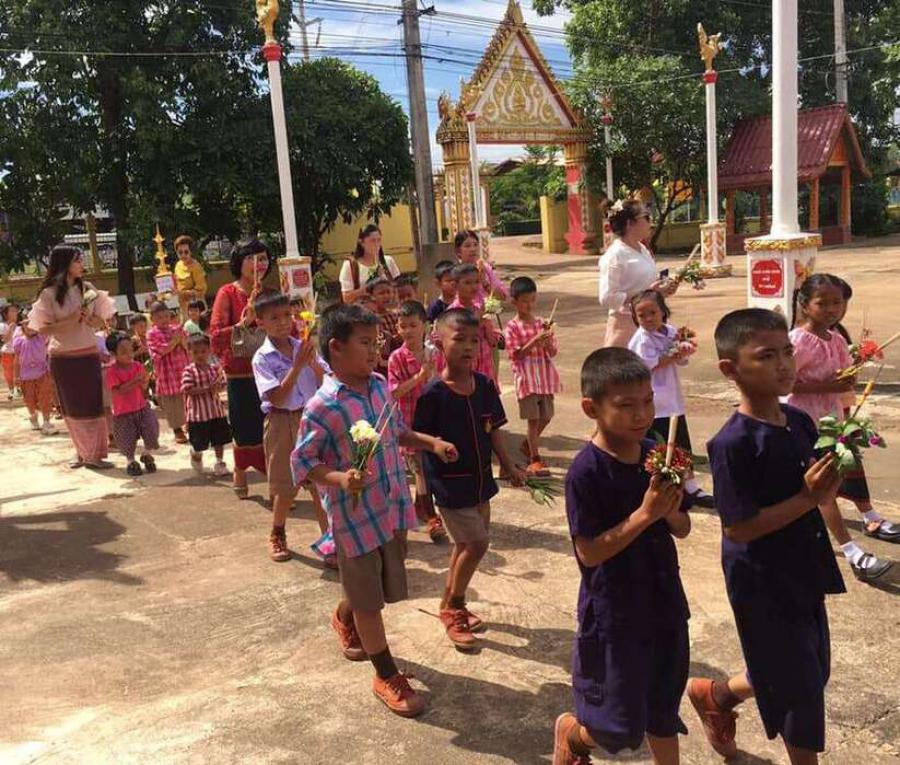 คณะครูและนักเรียนโรงเรียนหนองอ้อบำเพ็ญร่วมกันแห่เทียนและเวียนเทียนรอบพระอุโบสถ ณ วัดหนองอ้อ