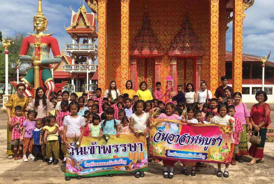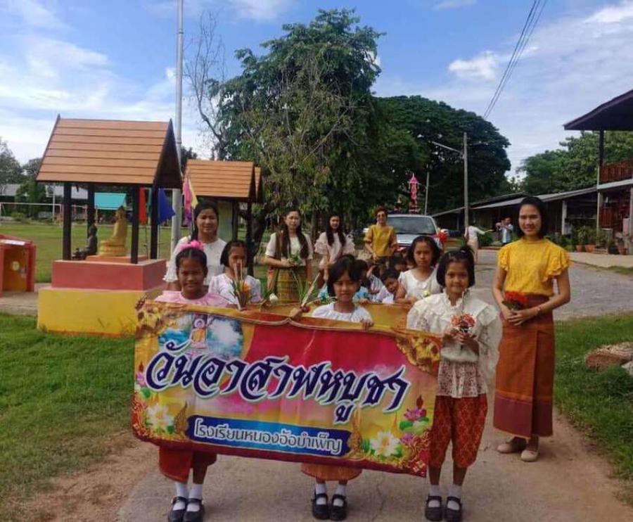 คณะครูและนักเรียนโรงเรียนหนองอ้อบำเพ็ญร่วมกันแห่เทียนและเวียนเทียนรอบพระอุโบสถ ณ วัดหนองอ้อ เนื่องในวันสำคัญทางพระพุทธศาสนา วันอาสาฬหบูชาและวันเข้าพรรษาที่จะมาถึงในวันที่ 16 - 17 กรกฎาคม นี้ S:0