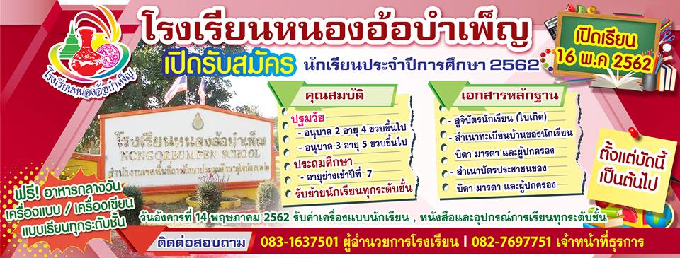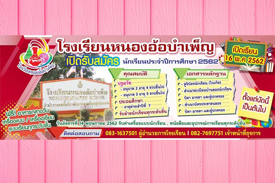 โรงเรียนหนองอ้อบำเพ็ญ เปิดรับสมัครนักเรียน ประจำปี 2562