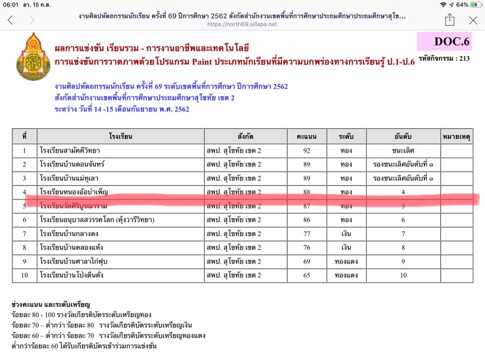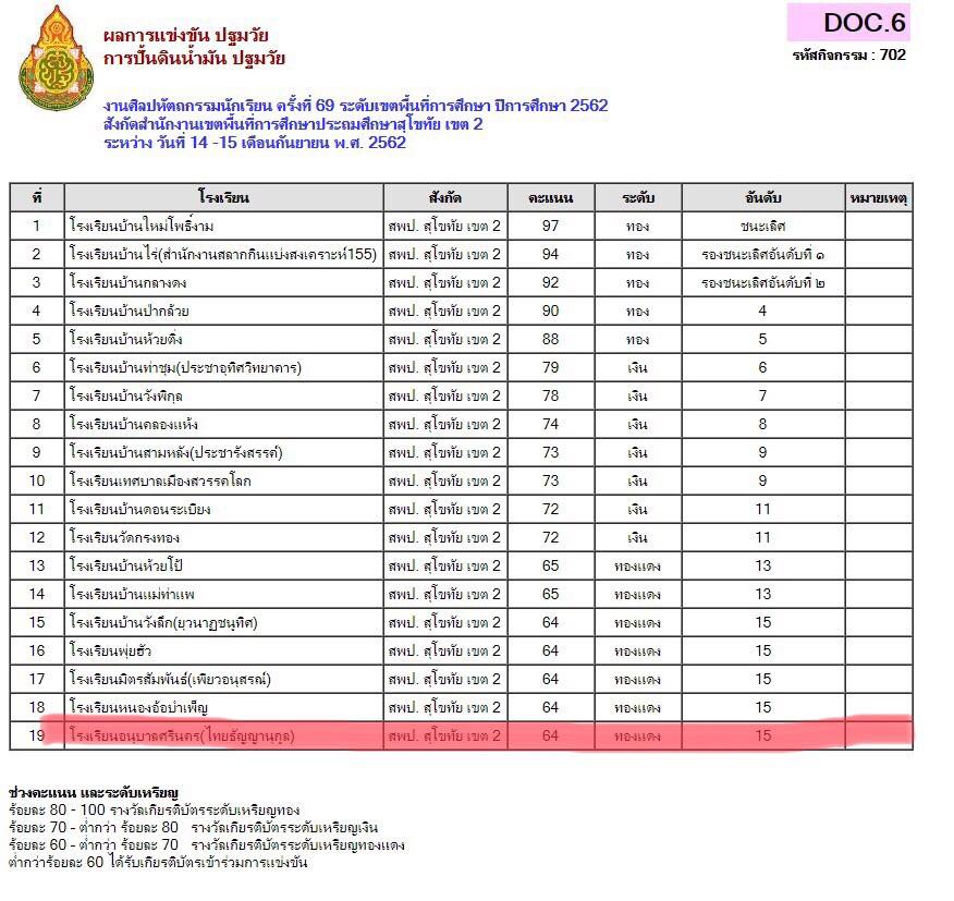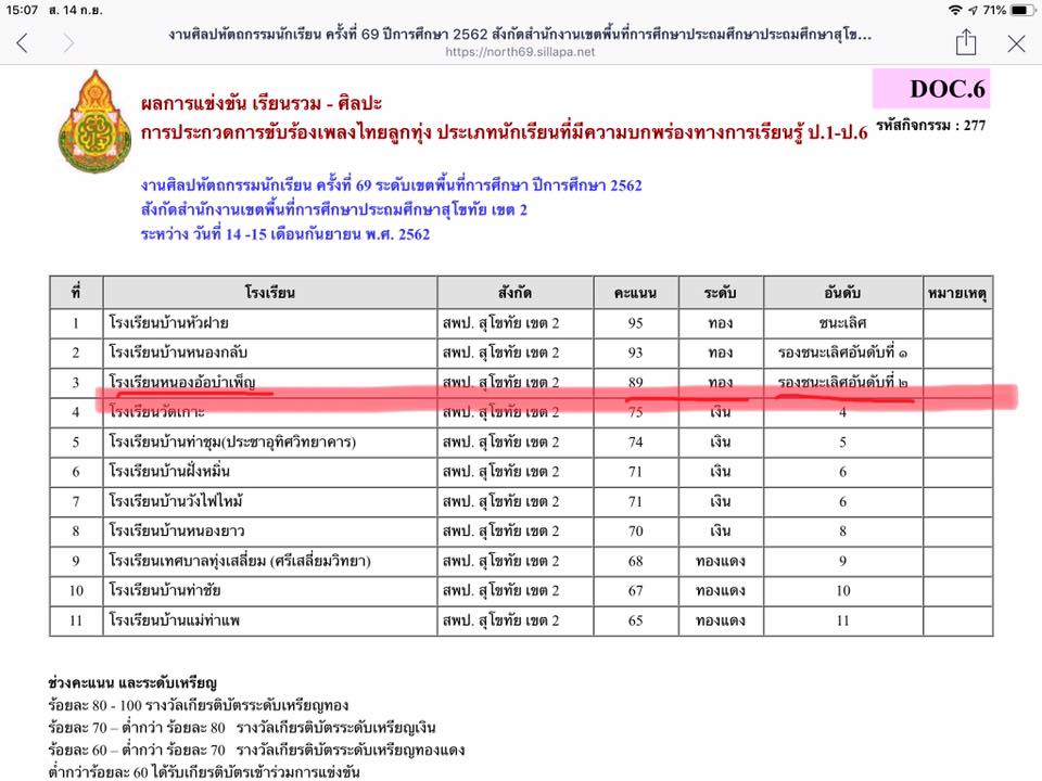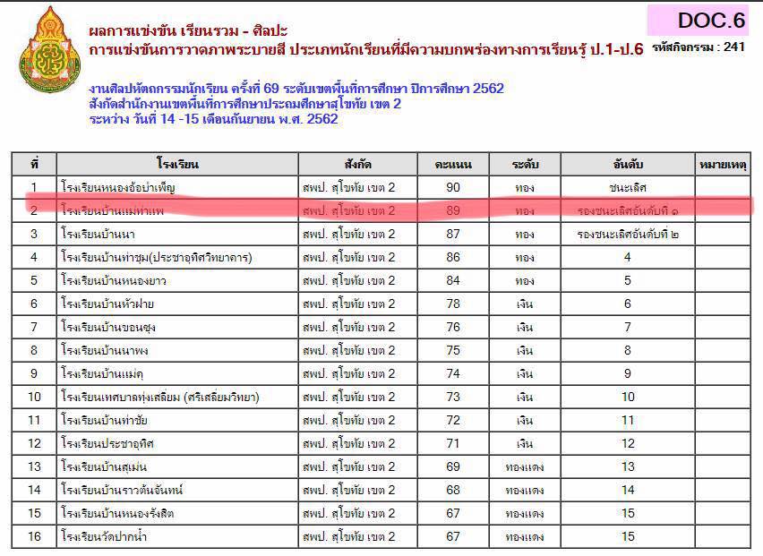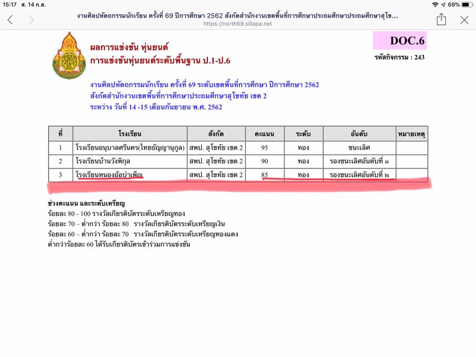 ประกาศผลการแข่งขันศิลปหัตถกรรมนักเรียน ปี2562 ทั้ง 11 รายการ โรงเรียนหนองอ้อบำเพ็ญได้ชนะเลิศไปต่อระดับชาติ (ภาคเหนือ) 3 รายการ