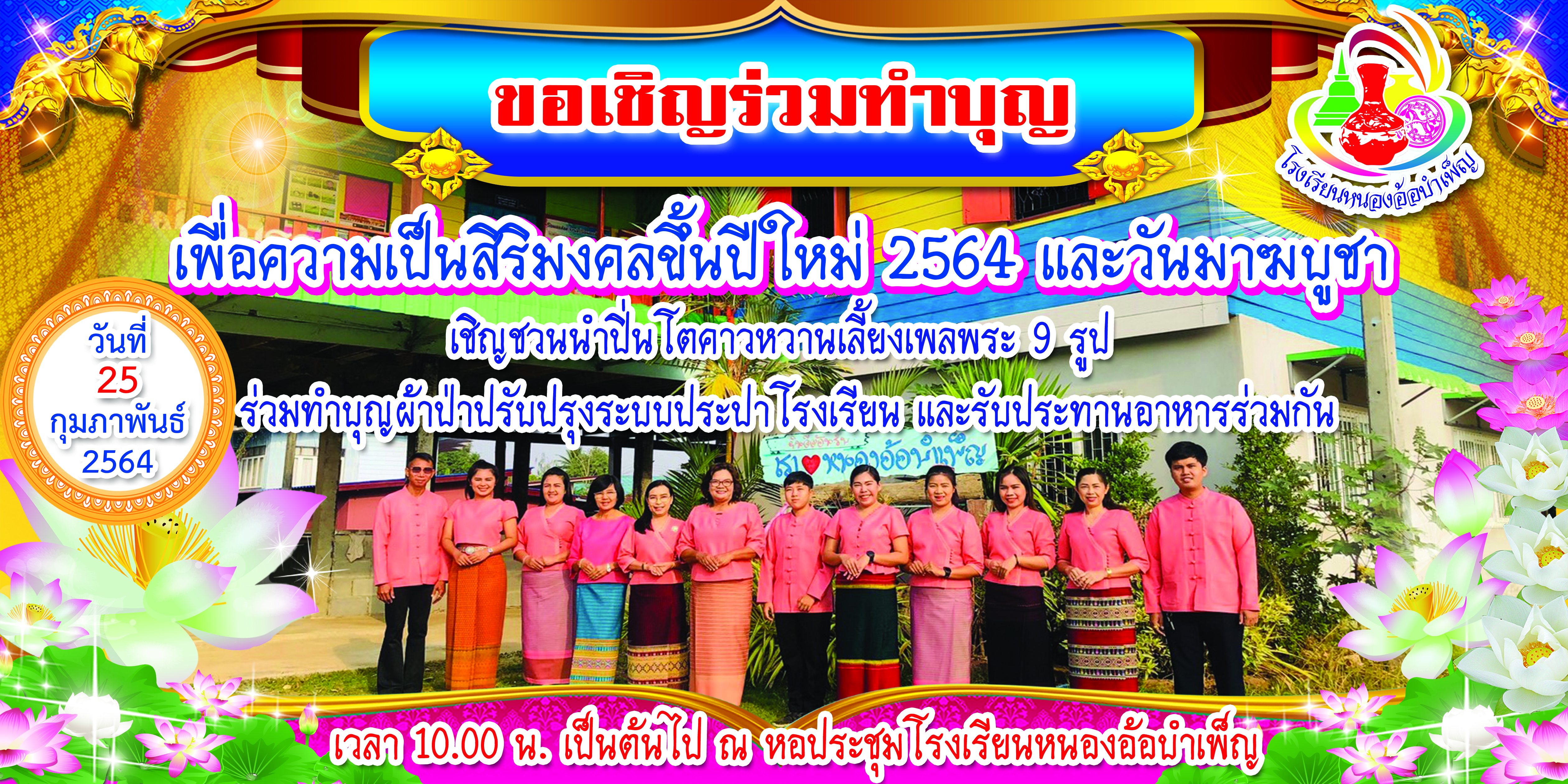 เรียนเชิญผู้ปกครองนักเรียนศิษย์เก่าและชุมชน ทำบุญร่วมกันนะคะ