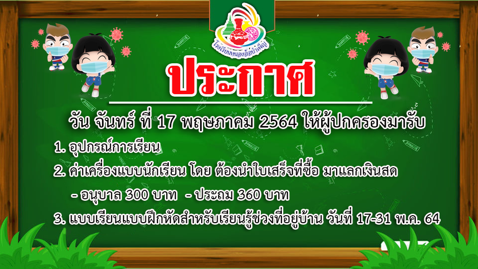 ประกาศให้ผู้ปกครองมารับ อุปกรณ์การเรียน